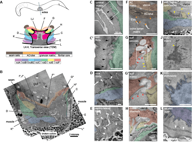 Under Construction Left: Examples of aECM factors and their dynamic patterns during vulva morphogenesis. Right: TEM images of the vulva aECM. Share this: Click to share on X (Opens in new window) X Click to share on Facebook (Opens in new window) Facebook Like Loading...
